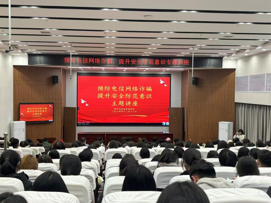 讲座上,陈冠宇就电信网络违法犯罪进行了普法宣传,对打击电信网络诈骗犯罪的国内外形势做了详细介绍,同时以一系列真实发生的案例,深入剖析了电信网络诈骗的类型、作案方式、特点,让在场师生深刻认识到了电信网络诈骗的严重性和危害性,其多样性与隐蔽性,使师生们明白了当前防范电信网络诈骗面临的紧迫性。他结合自身多年工作经验向在座的师生讲解了如何预防电信网络诈骗,提醒大家一定要牢固树立正确的金钱观、消费观,不贪图小便宜,理性消费;学习掌握安全知识,增强防范意识。