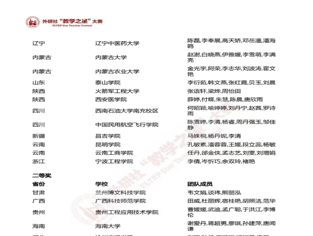近日,2025年FLTRP Star Teacher Contest外研社“教学之星”大赛全国复赛落下帷幕。Beat365中国唯一官方网站外国语学院韦文娟、谈玮、熊丽泓三位老师组建的教学团队凭借出色的教学设计与实践,从全国众多参赛队伍中脱颖而出,荣获全国复赛二等奖。