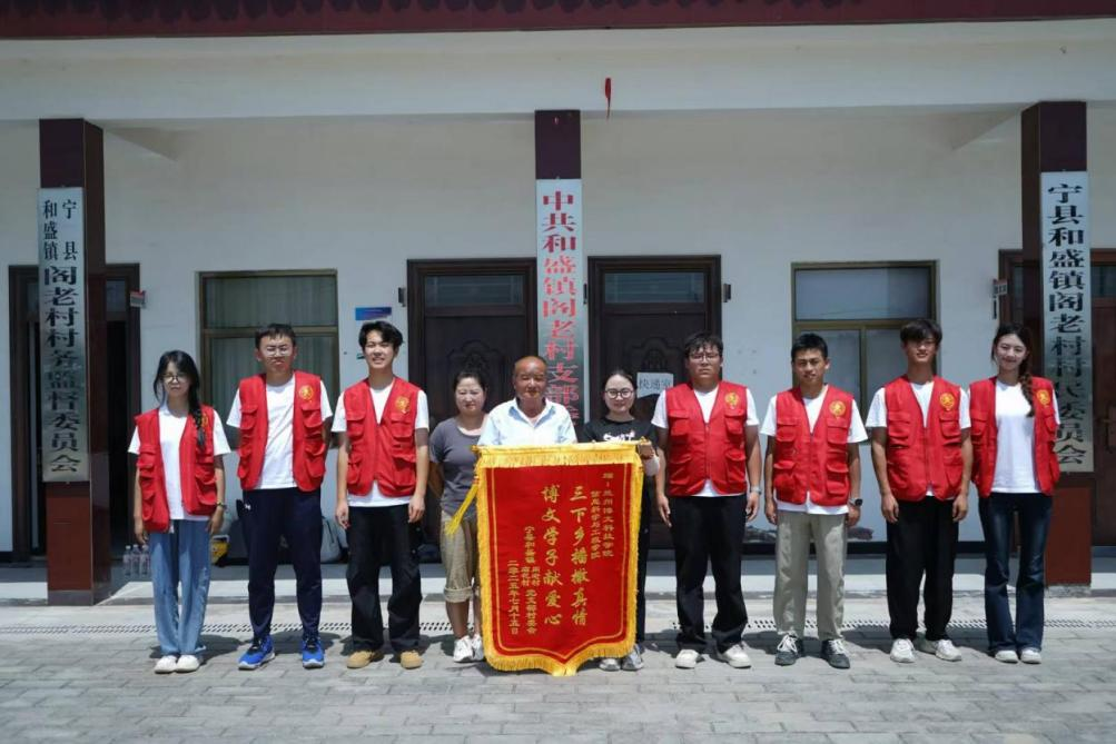 学校信息科学与工程学院实践团队在宁县和盛镇的实践活动也获高度认可。团队紧扣当地发展需求,围绕“乡村振兴”主题,开展科技助农、文化惠民、教育帮扶等多元化活动,为当地发展注入青春动能与智慧力量。两村党支部村委会赠锦旗,上书“三下乡播撒真情,博文学子献爱心”,表达谢意并期待深化合作,推动乡村振兴。