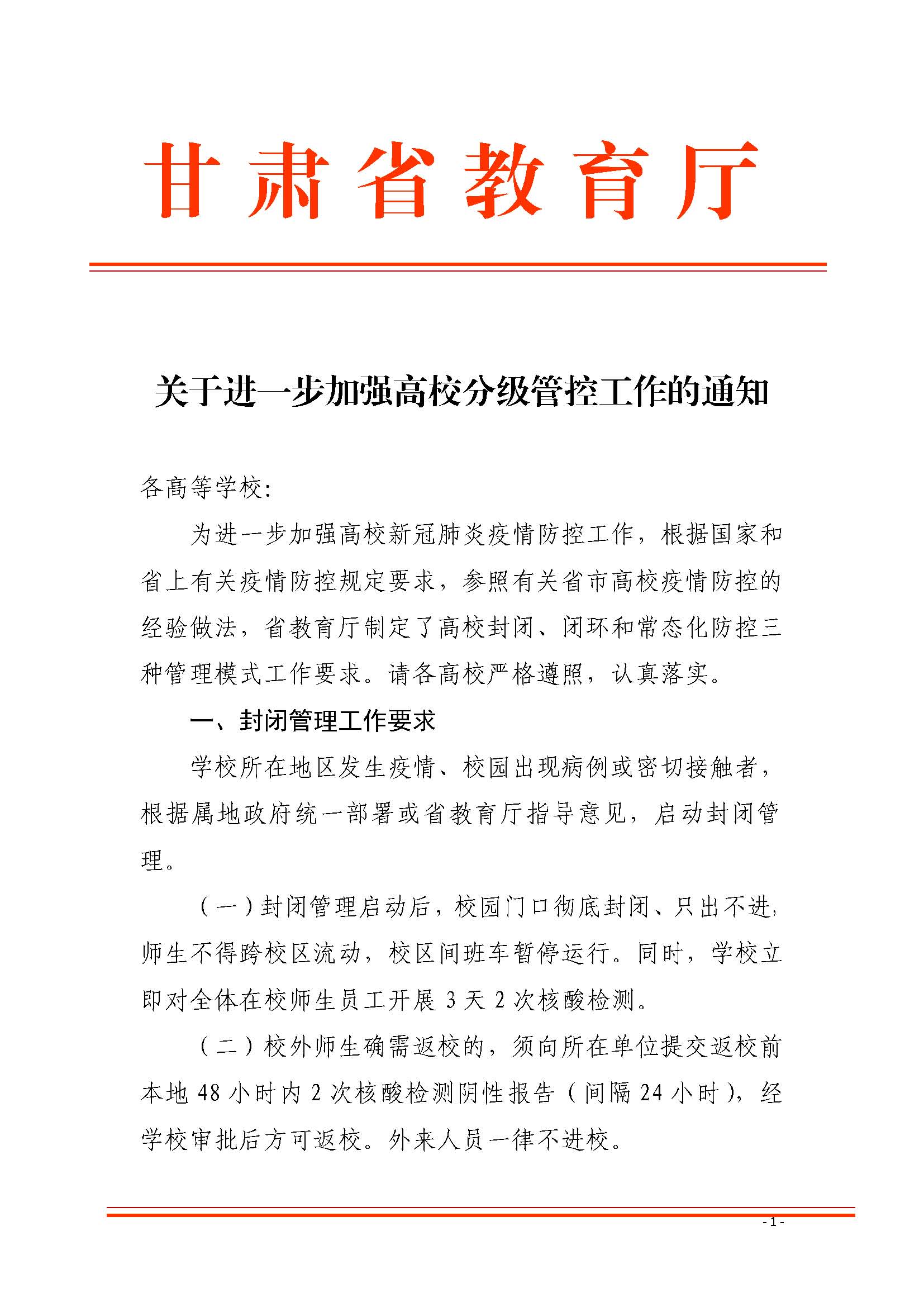 关于进一步加强高校分级管控工作的通知