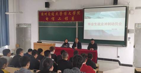 大会上,刘院长首先针对目前大学生的就业观和就业前景进行发言,并对现场同学们在就业方向、就业选择、职业发展等方面的问题进行现场交流。随后,结合学院2021届毕业生就业意向调查数据和目前就业形势,重点从招聘信息获取、岗位招聘要求、面试准备等内容进行了详细讲解。她希望毕业生们保持积极的就业心态,掌握面试礼仪、面试技巧,把握求职黄金期,抓住机遇,并鼓励毕业生们既要仰望星空,又要脚踏实地,做有理想、有本领、有担当的优秀博文人。最后,郭主任做了总结发言,要求全系上下要高度重视毕业生就业、创业工作,持续做好离校未就业毕业生的就业工作。希望未就业学生抓紧机遇,珍惜机会,争取早日签约。