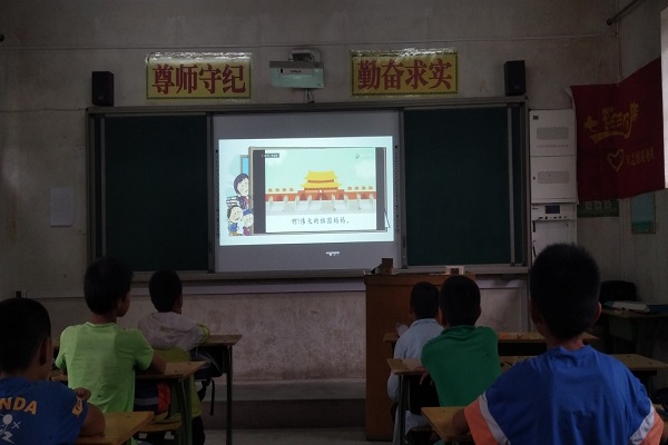 志愿者们给孩子们在课前给孩子们抛出了许多关于祖国、中国共产党、习近平新时代中国特色社会主义思想关知识以及十九大的相关知识,再通过视频的课的方式解答,在视频播放结束后再次提问加深印象。问题例如“十九大的大会主题是什么?五星红旗上的大星代表什么?少先队的创立者与领导者是谁?习近平爷爷对少先队员的寄语与期望是什么?新时代中国特色社会主义思想是什么的行动指南?”等相关爱国主义教育以及对习近平新时代中国特色社会主义思想和党的十九大知识的问题。