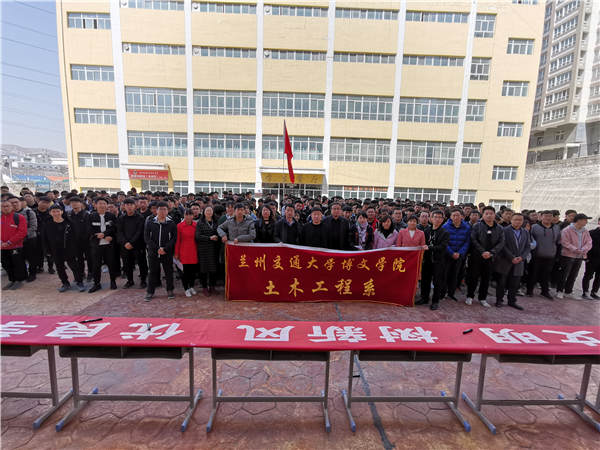 学风建设是高等院校永恒的主题,是全面贯彻党的教育方针,是高等院校实现培养人才的重要条件,是衡量办学水平的重要标志。兰州交通大学博文学院土木工程系于2019年3月25日中午十二点半在北校区综合教学楼前举行学风建设活动启动仪式。土木工程系主任黄钰峰、教学管理副主任李敬元、学生管理副主任王俊鹏及土木工程系全体老师出席此次大会。