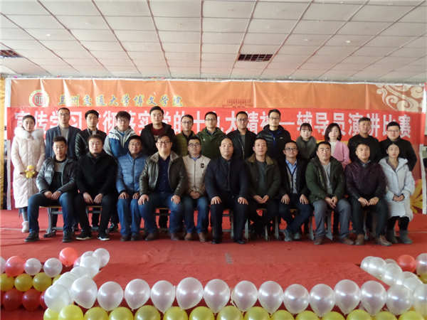 为深入宣传学习贯彻落实党的十九大精神,提高辅导员政治素养和业务水平, 加强我院辅导员队伍专业化、职业化发展,进一步提升我院学生思想政治教育和学生管理工作水平。12月20日下午14:30分,由学生处举办的宣传学习贯彻落实党的十九大精神——辅导员演讲比赛在学院体育馆301室举行。 学生处处长刘炳田,副处长张宏亮、刘秀星和各系学生管理副主任出席了本次活动并担任了评委,与300余名学生一起观看了这场精彩的演讲比赛。 本次演讲比赛以“不忘初心,牢记使命”为主题,来自学院各系的全体专职辅导员参加了比赛。比赛中,各位参赛辅导员立足本职工作、紧密围绕活动主题、结合十九大精神的学习,就个人如何开展学生思想政治教育和学生管理工作,如何做好大学生的人生导师和健康成长的引路人,如何深爱辅导员事业畅谈心得体会,充分展示了他们对辅导员工作的热爱,引起了在场观众的强烈共鸣,掌声不断,并得到现场师生的一致好评。 经过激烈角逐,交通运输系杨紫尧荣获一等奖,电信工程系陶佳、土木工程系巩岩荣获二等奖,外国语系王立童、艺术设计系王振伊、土木工程系杨生浩荣获三等奖。经信管理系赵磊、机电工程系张嘉、交通运输系安永刚、经信管理系李岩荣获优秀奖。 通过此次比赛,促进了各系辅导员之间相互交流学习,充分调动了辅导员工作积极性、主动性和创造性,进一步提升了我院大学生思想政治教育和学生管理工作水平,为下一步做好我院大学生思政政治教育工作打下了坚实基础。 学生处