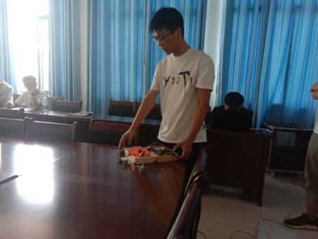充分了解两只参赛队伍的参赛作品设计原理和结构组成后,评委们没有足够清晰描述的地方提出了自己的意见,并给予了专业的建议。在看到同学们新颖的创作思想,有条不紊地调试作品,王院长表示非常欣慰,他充分肯定了师生们为学院争得荣誉所做出努力。同时,也希望师生们再接再厉,攻坚克难,认真细致地完善作品,并预祝同学们在比赛中取得好成绩。
