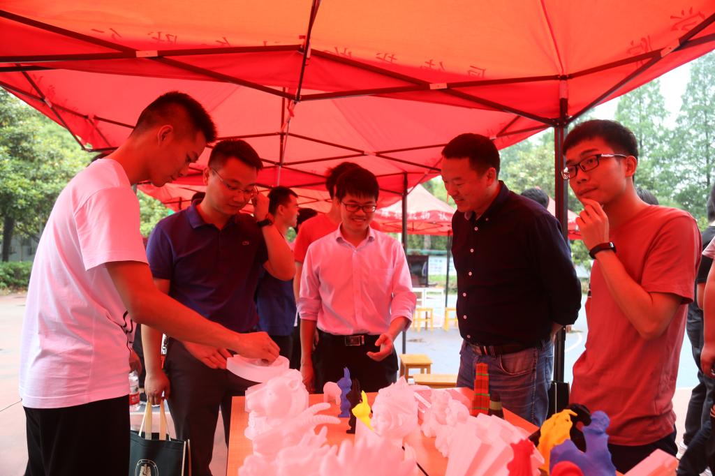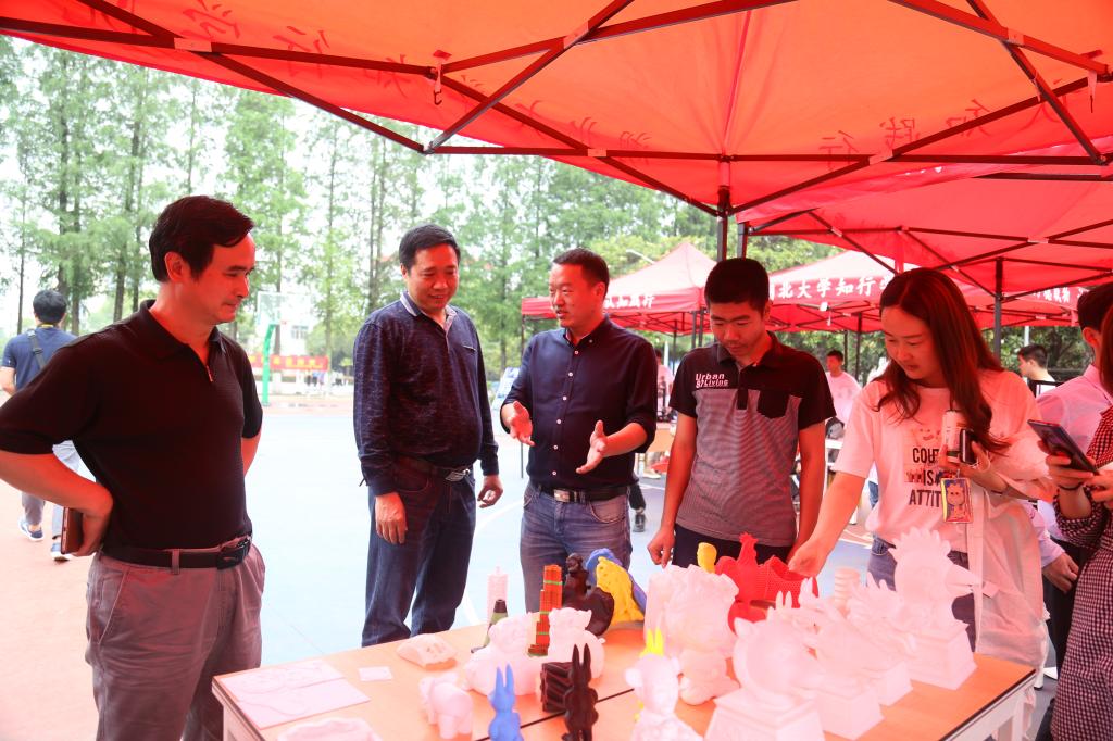 为展示我校科技育人成果,激发我校学生对科学、技术尤其是工程和设计创意的兴趣,促进3D打印技术与创新创意融合发展,培养造就“大众创业,万众创新”的主力军,bat365正版唯一官网于5月17日上午,在坤生园门口篮球场举办3D打印科普日活动,校长卜诗祯,副校长陈刚、黄智凌、王文凯,学工处处长王刚等校领导莅临现场,参与活动指导。