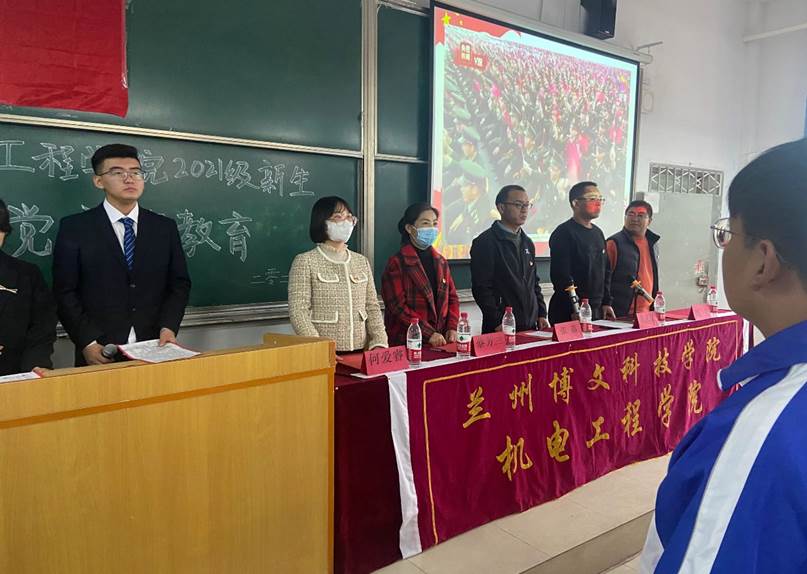 为使2021级新生更好地了解党的基本知识、掌握基本的入党要求和入党程序,帮助新生树立正确的指导思想,端正入党动机,鼓励2021级新生积极主动向党组织靠拢,帮助新生树立正确的人生观,价值观和世界观。我院于2021年10月09日12:40分星期六在教学楼西T4教室开展了新生入党启蒙教育系列活动。参加本次活动的领导及嘉宾有机电工程学院学生第一党支部书记张嘉老师、机电工程学院学生第二党支部书记蔡芳兰老师、机电工程学院学生第三党支部书记苏来友老师、机电工程学院学生第四党支部书记周宏老师、机电工程学院学生第五党支部书记何爱睿老师,以及2021级新生。