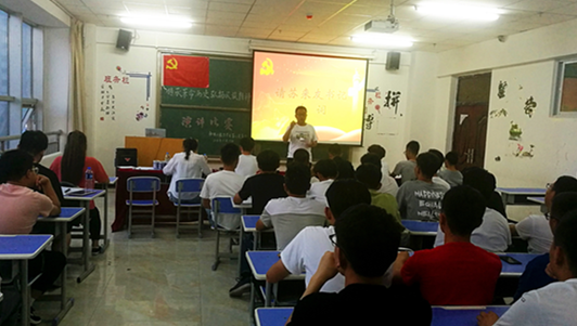 在党的98周年诞辰之际,为了传承民族精神,弘扬民族精神文化。学习革命先烈功高不自居、位高不自显,正确对待自己、正确对待组织、正确对待群众的优秀品格;学习他们先人后己、舍身忘我、淡泊名利的高尚情操,2019年6月17日由机电工程系学生第三党支部以“传承革命历史,弘扬民族精神”为主题的图文演讲比赛在综合楼0808教室进行,机电工程系学生第三党支部书记出席了本次活动。