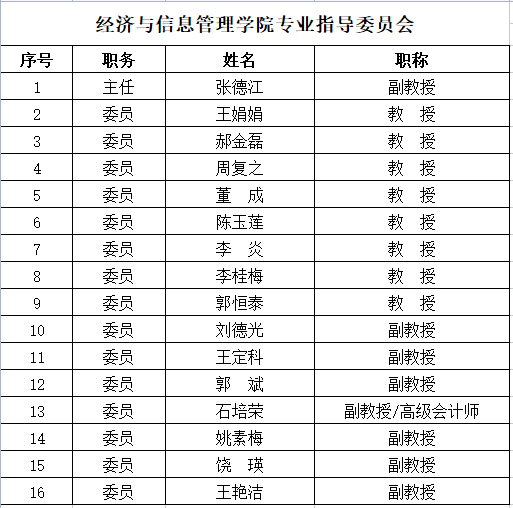 经济与信息管理学院专业指导委员会