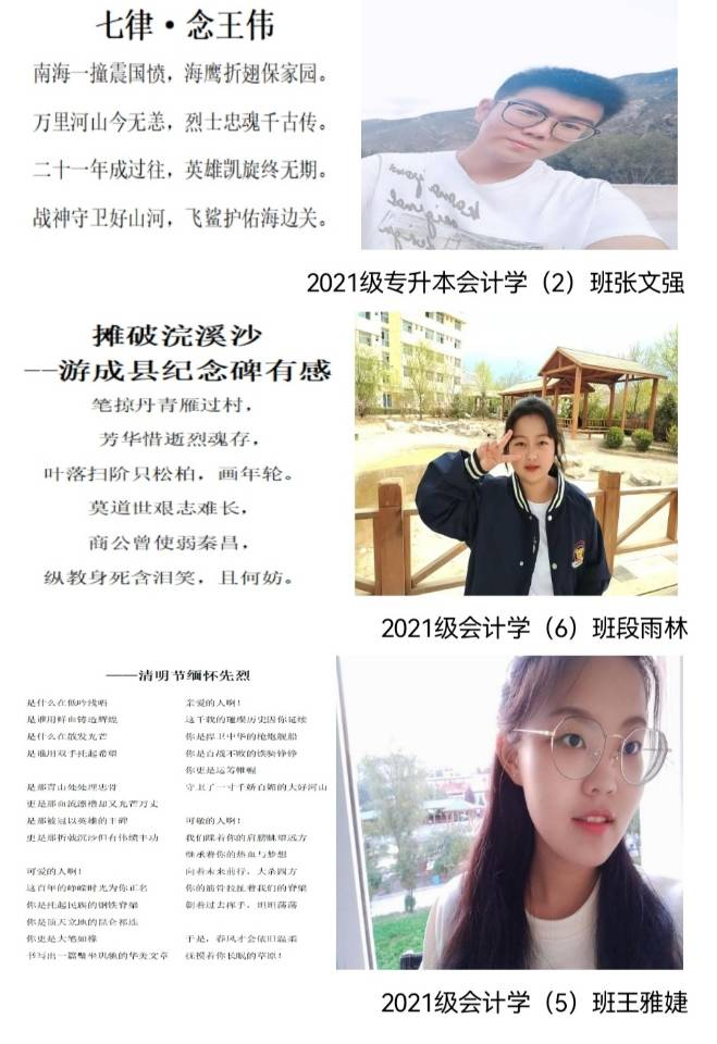 “一年一度一清明,一伤一念一追思。”为缅怀革命先烈,追寻英雄先辈们艰苦奋斗的足迹,弘扬爱国主义精神,发扬先烈遗志,积极向革命先烈学习,倡导绿色清明、文化清明。经济与信息管理学院党总支于2022年3月30日至4月3日举办了以“缅怀革命先烈,感恩幸福生活”为主题的诗歌征文活动。