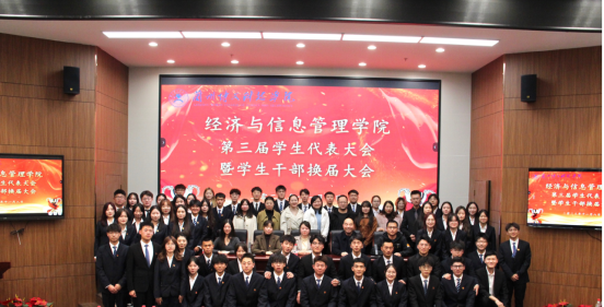 为了更好的开展学院各项活动,我院于2023年11月8日晚19点30分在综合教学楼学术报告厅隆重举行经济与信息管理学院学生代表大会暨学生干部换届大会。出席本次会议的有经济与信息管理学院党委书记兼院长张利、副院长刘炳田、陈学红,党委副书记赵磊、团总支常务副书记唐凌洁及各辅导员老师,还有来自学校校团学会代表、各社团代表、各学院学生分会代表、我院各班级的学生代表。