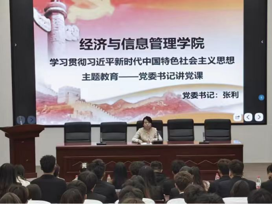 为深入学习贯彻习近平新时代中国特色社会主义思想主题教育,加强学院师生党性教育与党建工作,经济与信息管理学院党委于2023年11月7日在综合教学楼12楼报告厅顺利开展“第二批学习贯彻习近平新时代中国特色社会主义思想主题教育”的专题党课。本次党课由经济与信息管理学院党委书记张利主讲,经济与信息管理学院全体党员、积极分子参与此次党课活动。