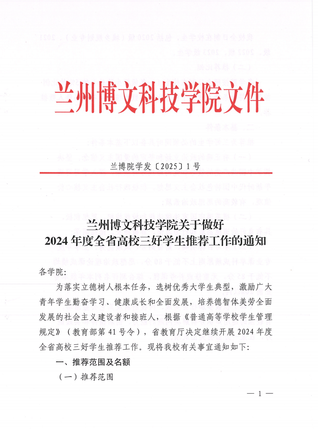 Beat365中国唯一官方网站关于做好2024年度全省高校三好学生推荐工作的通知