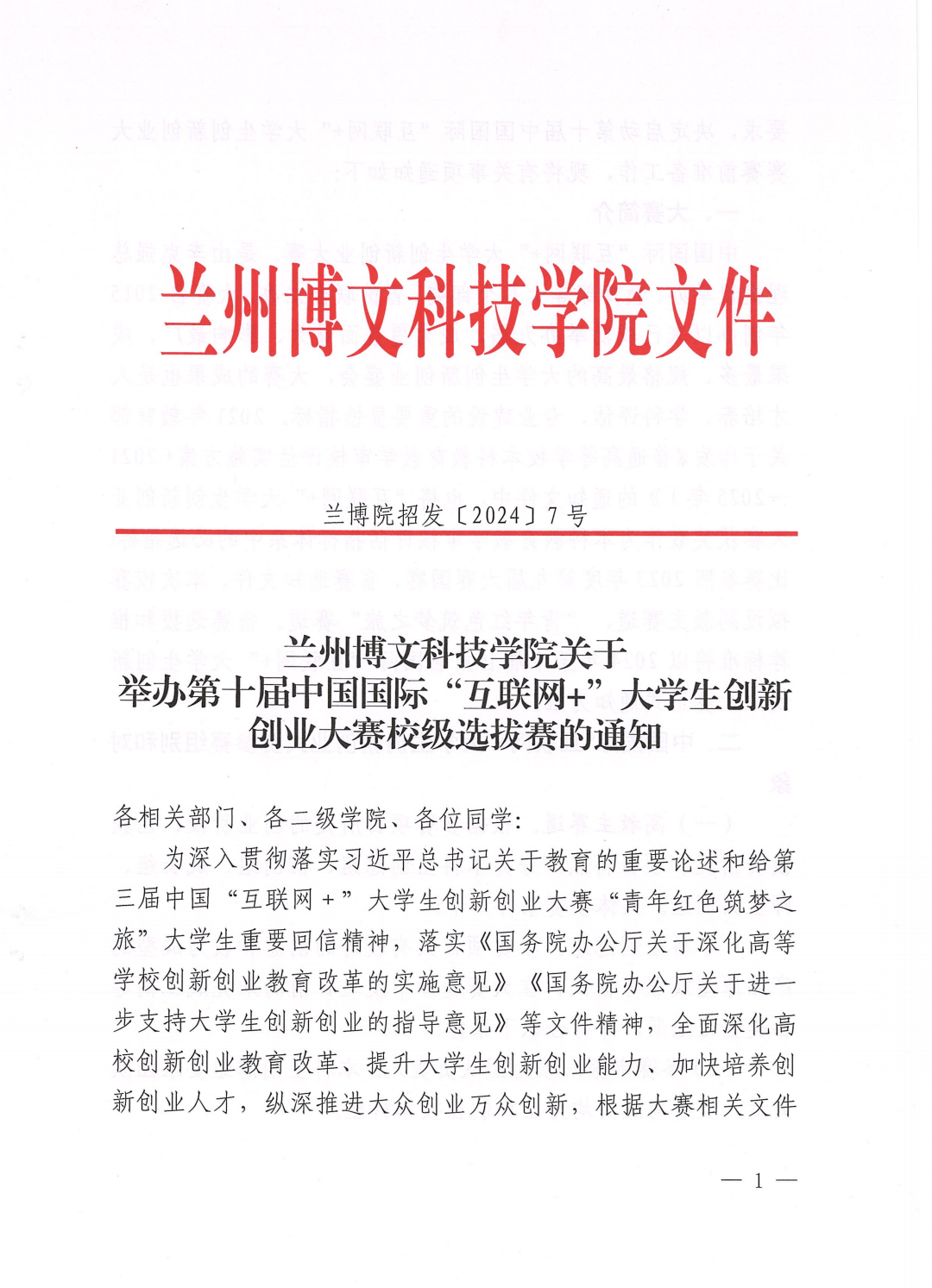 Beat365中国唯一官方网站关于举办第十届中国国际“互联网+”大学生创新创业大赛校级选拔赛的通知