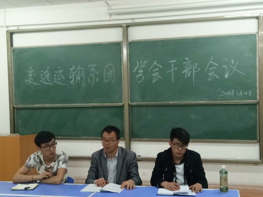 新学期、新作为。为了使学院团学会要求的工作尽快落实到位,交通运输系团学会于2018年3月14日20时在北校区综合教学楼0801教室召开团学会工作会议,研究布置新学期的系团学会工作。系辅导员安永刚老师、团总支常务副书记李旭、团学会主席团各成员、学生会各部部长参与本次会议,会议由学生会主席姜世乾主持召开。 辅导员安永刚老师对团学会上学期的工作进行了总结,并对上学期团学会管理和工作中的表现给予肯定,他强调系团学会上学期的工作积极、主动,取得了很好的成绩,特别是在学习贯彻十九大精神活动中表现突出,带动了全系工作的开展。成绩的取得离不开团学会成员的辛勤付出,安老师也指出团学会工作中存在的一些问题与不足,要求团学会成员在工作中互相配合,取长补短,做好工作,当好系里和学生的桥梁,在各项活动和学习中团学会成员要起带头作用。最后,安老师对新学期系团学会的工作做了详细部署,要求团学会各成员要以习近平新时代中国特色社会主义思想为指导,提高思想认识,要尽快进入工作状态;各部门要明确任务,互相配合,重点严查学生早操、晚自习、迟到等,保证有一个良好的学习秩序;提前动手,做好学院春季运动会的各项准备工作,争取取得好成绩,树立起交通运输系的光辉旗帜。大会在热烈的掌声中结束。