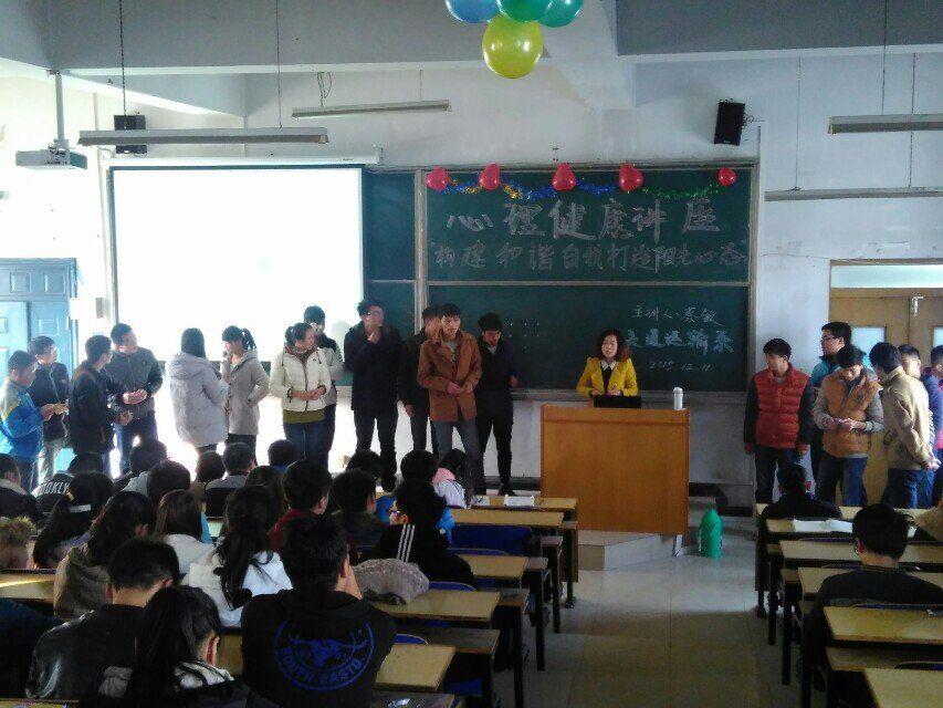 为响应甘肃省教育厅关于大学生思想政治教育百千万工程,兰州交通大学博文学院交通运输系于2015年12月11日14点30分在教学楼东T1举行了“心理健康知识讲座”。本次讲座的讲师为我院心理咨询师蔡敏老师。参加这次讲座的还有交通运输系学生管理副主任梁婷婷、我系部分老师以及14级全体同学。