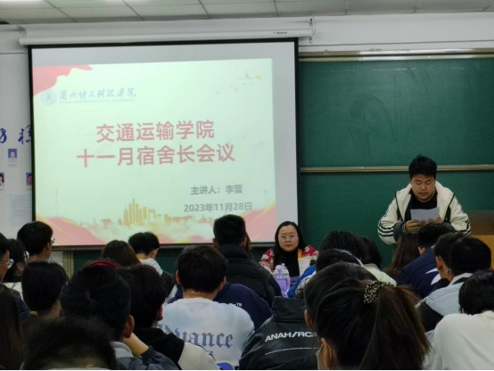 交通运输学院于11月例行召开了宿舍长会议。本次宿舍长会议旨在总结和反馈11月宿舍长的工作表现,同时讨论并确定12月的工作计划。宿舍长们承担着重要的责任,需要确保宿舍内的秩序和安全,并提供舒适的居住环境。此次会议旨在为宿舍长们提供一个分享经验、解决问题以及彼此交流的平台,以促进宿舍管理的持续改进。本次会议由李蕾老师主持,我院宿舍长参与会议。