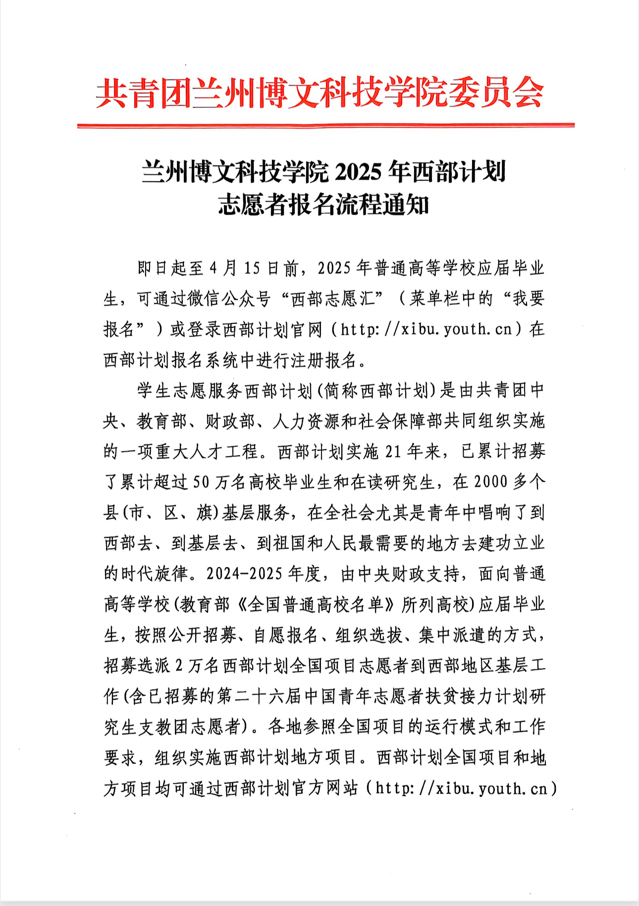 2025年西部计划志愿者报名流程通知