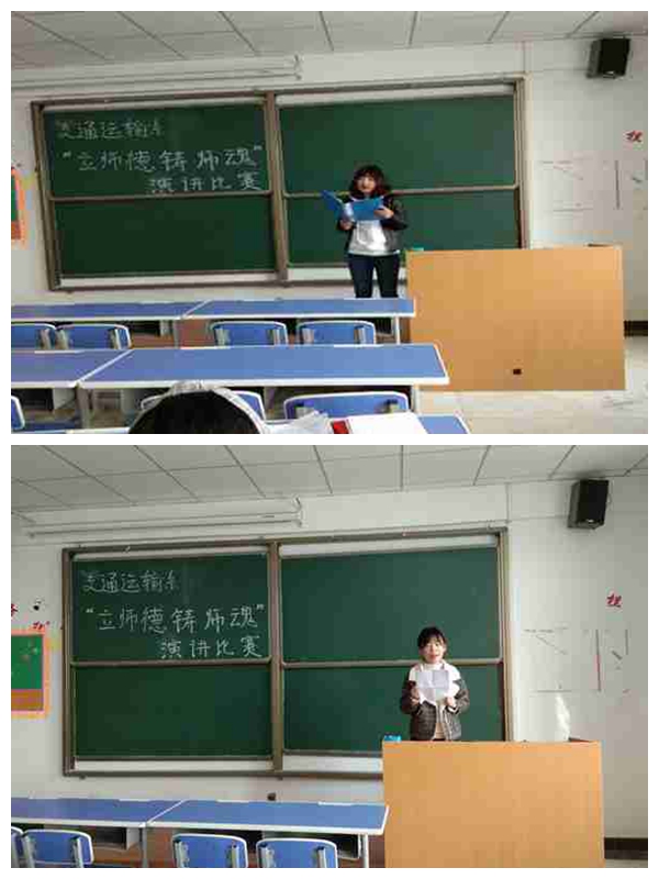 演讲比赛中,老师们紧紧围绕“立师德,铸师魂”主题,从不同角度和不同层面阐述了对师德师风的理解和认识,有的讲述了从教以来的甘苦,生动诠释自己对“教师”这一职业的理解和体悟;有的畅谈自己在平凡的工作岗位上逐渐走向成熟的成长历程;有的阐述了自己从教以来与学生亦师亦友,在助力学生成长成才中实现自我价值的心理感悟;有抒发了自己为教育事业奋斗终生的铮铮誓言。真情表达着对教育事业的执着追求和热爱。最后,刘盼盼、王玉琳、王雅莉和刘影老师获得比赛优秀奖,并且选派刘盼盼老师代表交通运输系参加学院的演讲比赛。