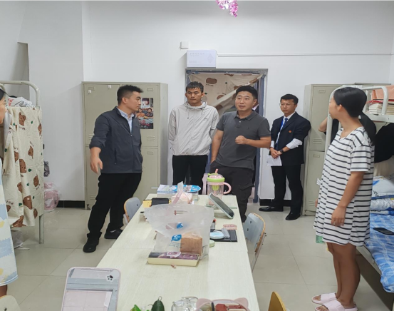 在宿舍楼内,学院领导逐一走访了多个新生宿舍,与新生们进行了面对面交流。郭院长亲切慰问了新同学们,与新生亲切交谈,他强调,大学是人生中一个重要转折点,希望同学们能够尽快适应新的环境,明确自己的目标,合理规划时间,积极参与各类校园文化活动,不断提升自我,为未来打下坚实的基础。另外,郭院长还详细询问同学们都来自哪里、所学专业、开学以来的学习情况,以及对大学生活的初步感受和期待,并鼓励他们认真学习,利用好课余时间,抓住宝贵的学习机会,争取在学期末取得一个优异的成绩。