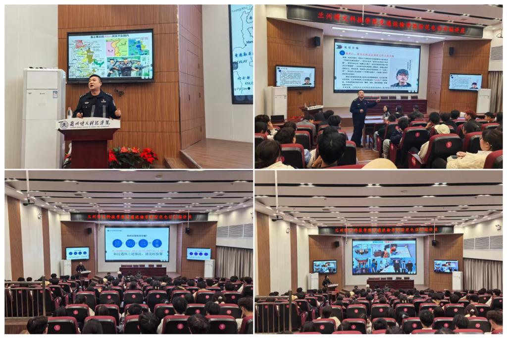 为切实提升大学生防诈反诈意识与自我保护能力,有效遏制校园诈骗案件高发态势,11月3日,交通运输学院特邀榆中县安局反诈中心主任陈冠宇警官,为全院师生带来了一场主题鲜明、内容详实的防诈骗专题讲座。学校保卫处处长王正茂、交通运输学院学生管理副院长、全体辅导员及2025届全体大一新生参加现场学习氛围浓厚。
