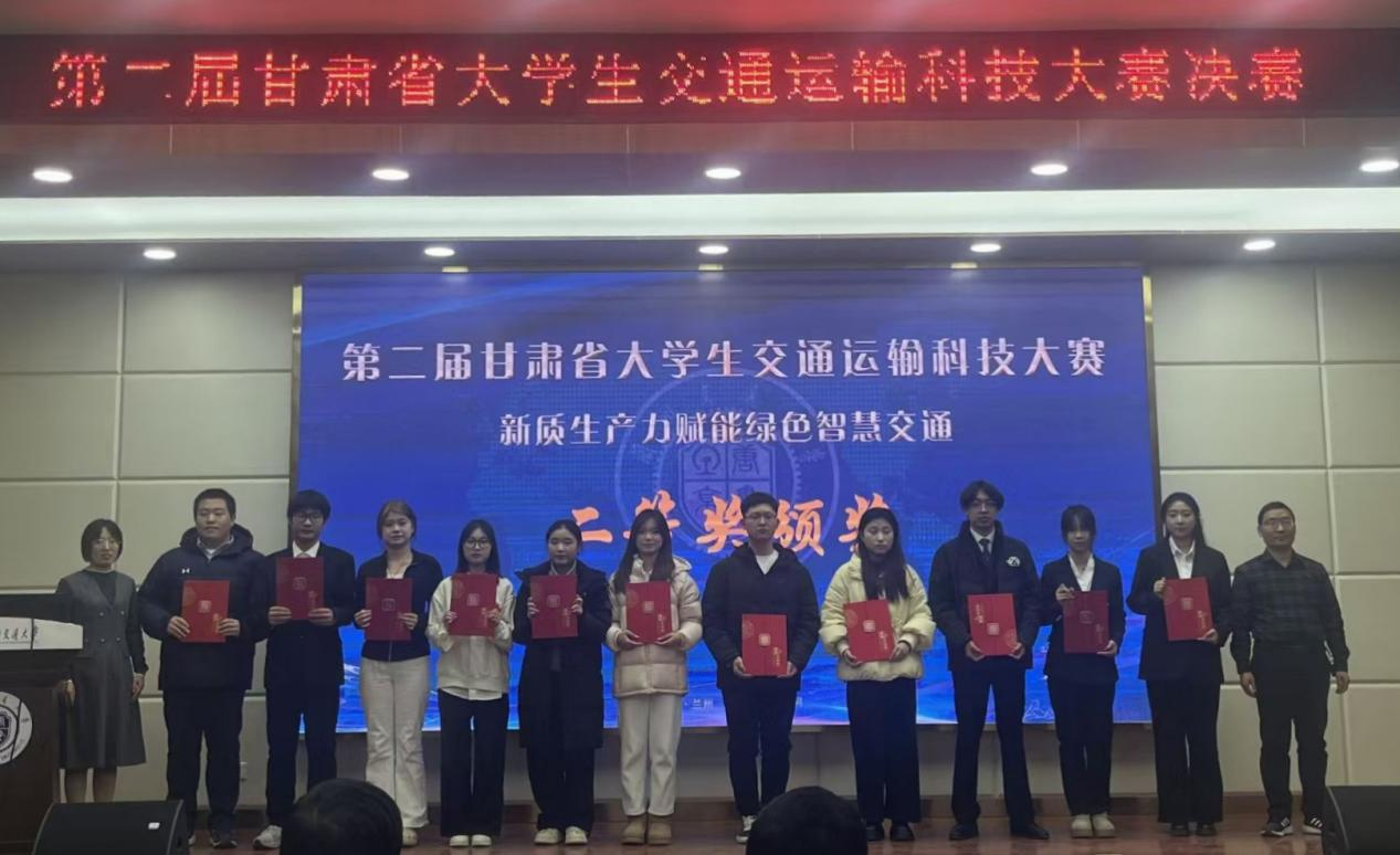 2025年12月7日,由甘肃省教育厅主办、兰州交通大学承办的第二届甘肃省大学生交通运输科技大赛成功举办。本届大赛以“新质生产力赋能绿色智慧交通”为主题,吸引各省高校的优秀学子共同探讨交通运输领域的创新解决方案。我校交通运输学院6支队伍成功晋级决赛,最终斩获一等奖1项、二等奖1项、三等奖4项。同时,学院凭借出色的组织与指导工作,荣获“优秀组织奖”。