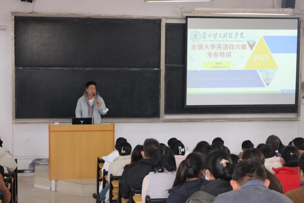 2023年下半年全国大学英语四、六级考试将于1216日举行,根据甘肃省考试院相关要求,保证每位参与本次考试的人员熟悉考务操作规范,依法依规开展相关工作。20231213日,全国大学英语四六级考前培训在教学楼西T1和西T2教室召开,会议分别由分管教学副校长和教务处处长主持,参与考试监考、考务等相关人员参加会议。