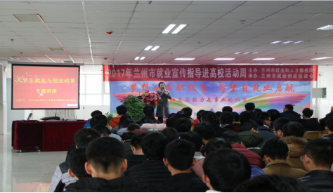 为了全面落实就业创业政策,为我院学生提供更加方便、有效的指导服务,全方位促进我院毕业生就业创业工作。我院于20171222日携手兰州市就业和人才服务局在大学生活动中心举办了“大学生就业与创业政策”的专题讲座。兰州市就业和人才服务局副局长张建瑞、兰州市就业创业促进会秘书长张静,我院招生就业处处长郭宝军、就业指导中心老师张永强及我院200名学生代表参加本次讲座。