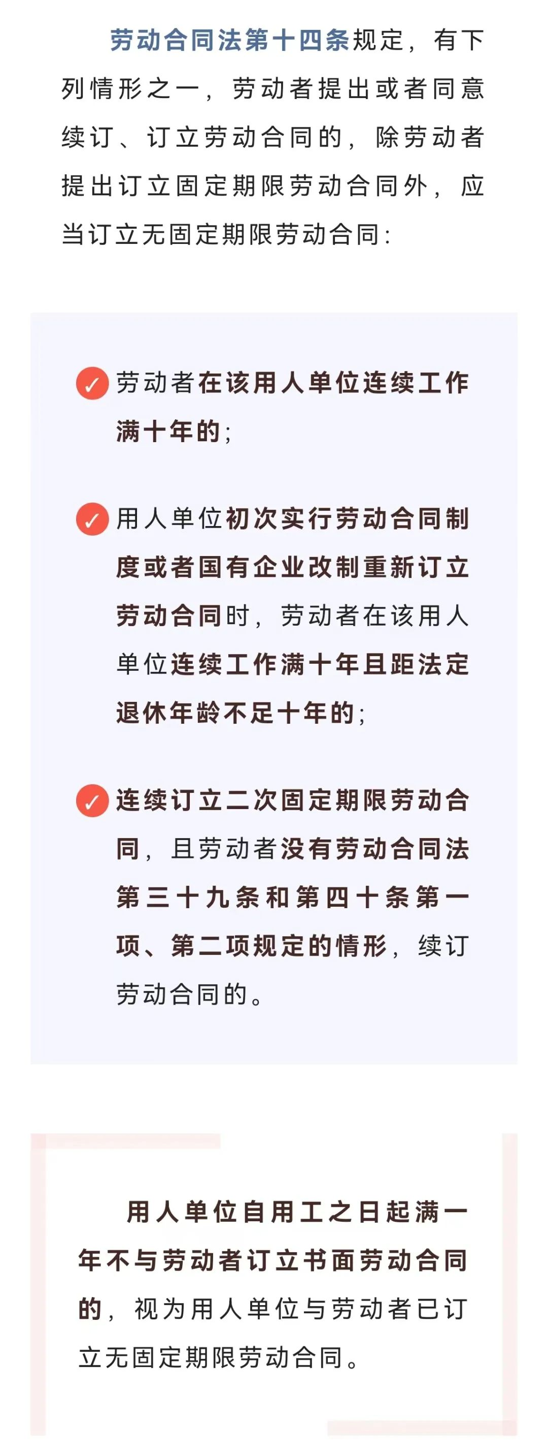 劳动合同是保障劳动者 实现劳动权益的重要法律形式之一 劳动合同分为固定期限劳动合同、无固定期限劳动合同和以完成一定工作任务为期限的劳动合同。 那么,哪些情况下用人单位必须与员工签订无固定期限劳动合同? 今天带你了解