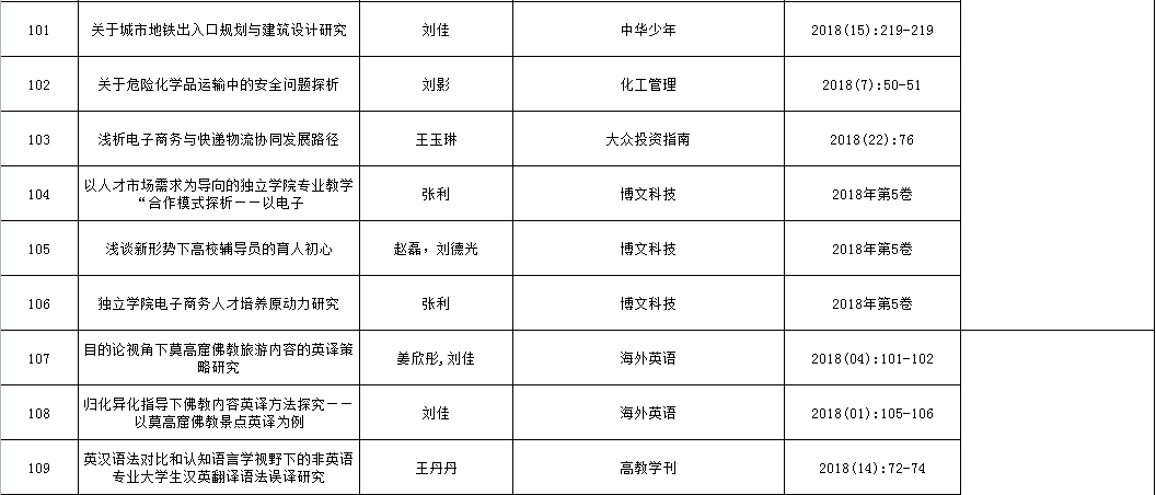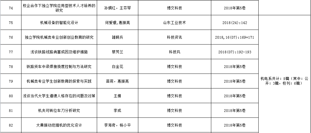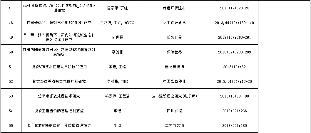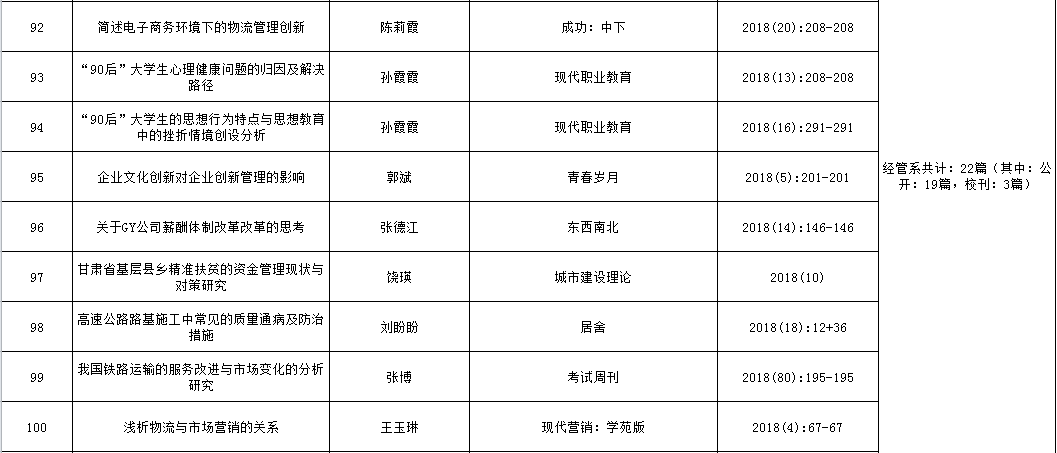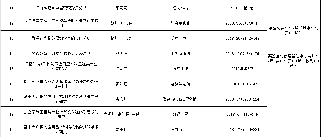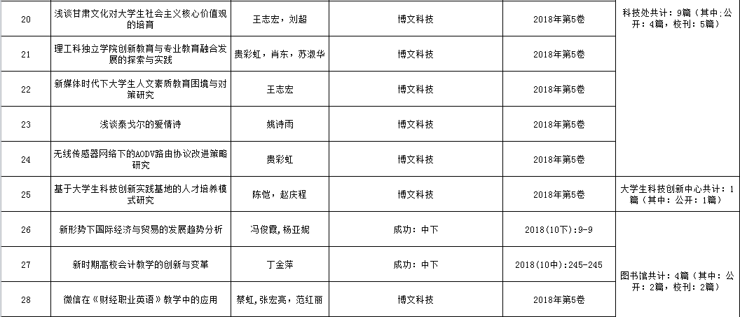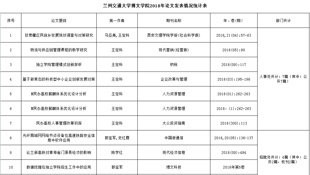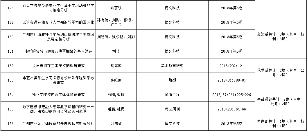 兰州交通大学博文学院2018年论文发表情况统计表