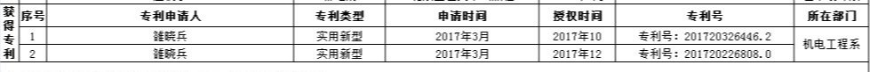 兰州交通大学博文学院2017下半年申请专利情况统计表