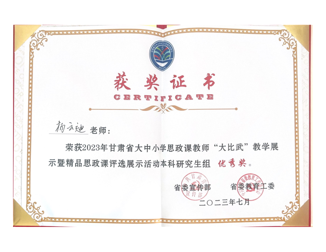 我校教师在甘肃省首届大中小学 思政课教师“大比武”教学展示活动 中取得优异成绩