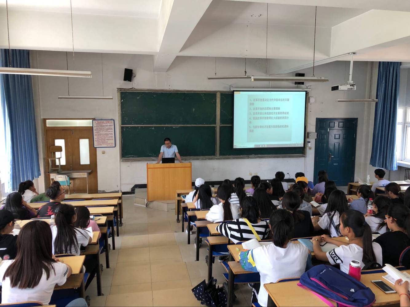 2018年是全面贯彻党的十九大精神开局之年,是波澜壮阔的改革开放四十周年,是全面建成小康社会关键之年。为深入学习贯彻习近平新时代中国特色社会主义思想和党的十九大精神,充分利用“形势与政策”课推动党的理论创新成果,让学生了解我国改革开放40年来取得的成就,增强学生的爱国情怀和民族自豪感。基础课部于6月8日下午在教学楼西T2教室组织了一次面向全院学生,以《改革开放40年经济发展取得的成就》为主题的报告会,由思政课骨干教师武立强主讲。