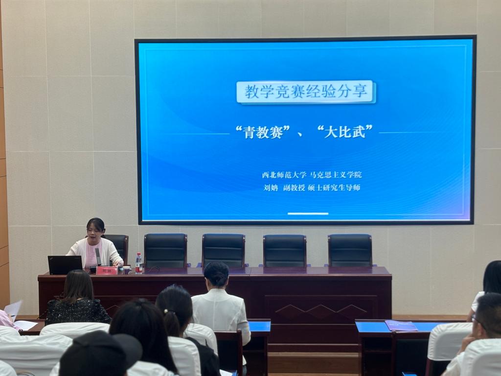 本次培训特邀来自西北师范大学、甘肃政法大学等省内马克思主义学院的5位专家进行专题授课,内容聚焦思政课教学、课程建设、科研、竞赛等方面。西北师范大学马克思主义学院刘姌副教授以《教学竞赛经验分享》为题,结合自身丰富的备赛参赛经历,深入剖析了思政课教学竞赛的备赛要点、技巧及评价标准,为教师提升教学展示能力和竞赛水平提供了宝贵指导。