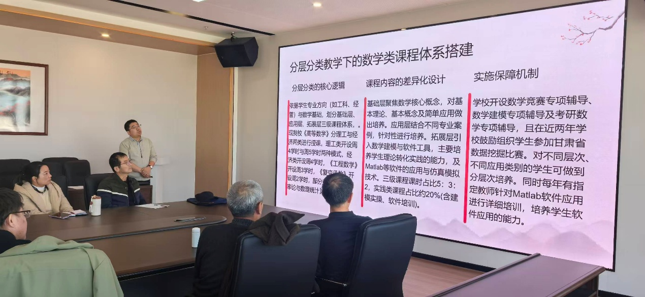 数学教研室李贵杰主任介绍了学院在《高等数学》《线性代数》等核心课程中开展分层教学的探索,通过课前学情测评划分学习层级,为不同层级学生制定差异化的教学进度与练习任务,同时分享了分层教学中师资调配、课堂管理的实操经验。