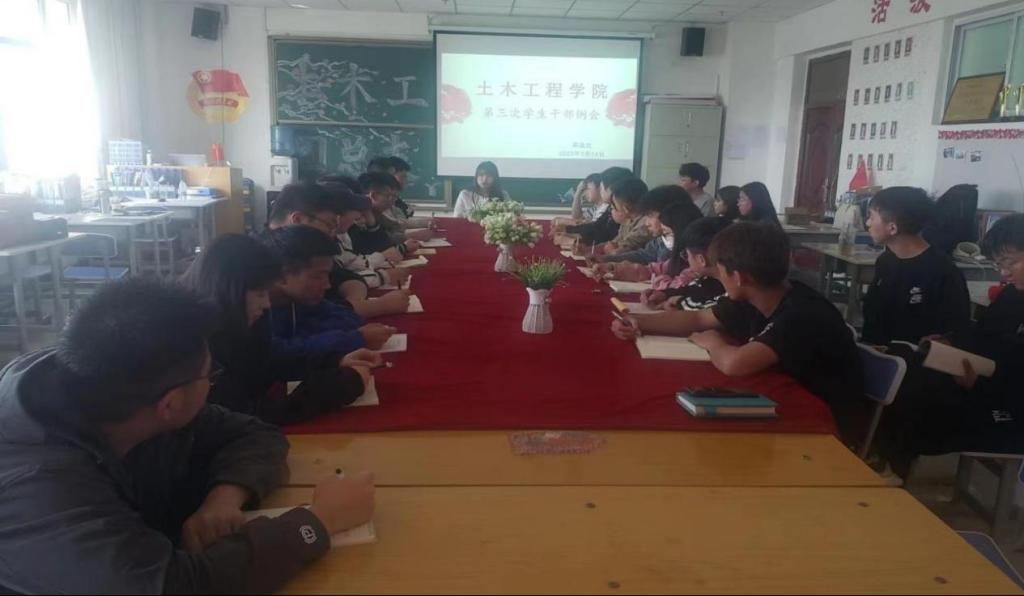 通过此次会议希望大家明确作为学生干部的责任,不仅要做好学生和老师之间的桥梁和纽带,更要严于律己,以身作则。相信今后我院学生干部的综合素质和工作能力都会有很大的提高,土木工程学院也将在学院领导、老师和所有学生的共同努力之下再创辉煌!