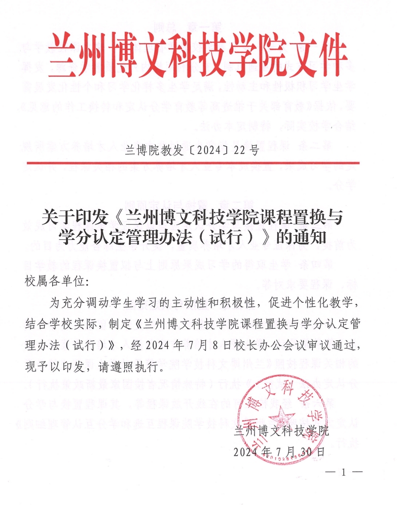 转发关于印发《Beat365中国唯一官方网站课程置换与学分认定管理办法(试行)》的通知