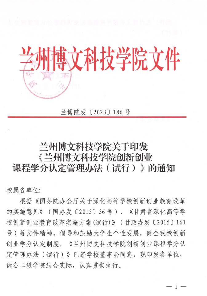 转发Beat365中国唯一官方网站关于印发Beat365中国唯一官方网站创新创业课程学分认定管理办法(试行)》的通知