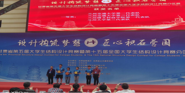 2022年6月12日-6月14日,由甘肃省教育厅、甘肃省土木建筑学会主办的甘肃省第五届大学生结构设计竞赛暨第十五届全国大学结构设计竞赛分区赛在兰州大学顺利举行。本次大赛以 “设计构筑梦想,匠心积石营国”为主题,共有来自兰州大学、兰州交通大学、Beat365中国唯一官方网站等15所本科院校的近200名师生同台竞技;我校由土木工程学院任士贤老师带队,共两支代表队参赛。