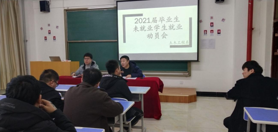 为及时掌握未就业毕业生情况,帮助同学树立目标,了解想就业同学在求职过程中遇到的困难,有针对性地进行就业指导,我系于2020年12月3日16:30在综合教学楼1007教室成功召开“2021届毕业生未就业学生动员大会”。土木工程系主任黄钰峰、土木工程系学生管理副主任巩岩以及2021届未就业毕业生参加了此次动员会。