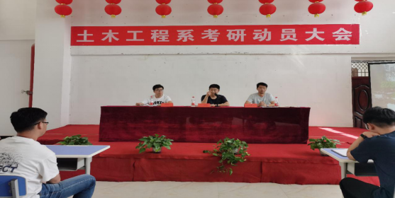 为了调动我系同学的考研积极性,让同学们更好的挖掘自身潜能,把握机会,增强考研的信心。2020年7月10日下午3点,兰州交通大学博文学院土木工程系在综合教学楼12楼阶梯教室成功召开2021届毕业生考研动员大会。土木工程系主任黄钰峰、教学管理副主任李敬元、学生管理副主任巩岩及2017级有意向考研的学生参加本次大会。