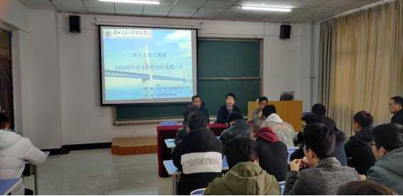 为了更好的开展毕业设计工作,保证2020届毕业设计(论文)工作顺利进行,2019年12月13日下午3时00分,土木工程系在新校区综合教学楼1005室召开2020届毕业生毕业设计选题工作。出席本次会议的有土木工程系教学副主任李敬元、专职教师苏彦军、任海涛以及毕业设计小组负责人,会议由土木工程系教学副主任李敬元主持。