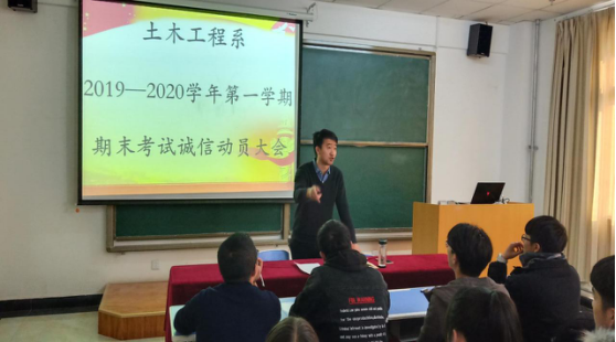 随着期末考试的临近,为了营造良好的考试氛围、净化考场环境、杜绝有失诚信的舞弊行为。我系于2019年12月24日在综合教学楼1006教室召开了以“认真备考,诚信考试”为主题的期末考试动员大会。会议由我系教学管理处副主任李敬元主持,各年级各班班长、副班长、团支书、学委及学生代表参加本次大会。