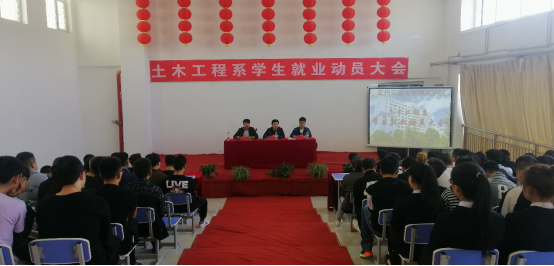 为了解答毕业生在就业中的困惑,让2016级同学们了解就业形势、就业渠道和就业方式,进一步帮助同学们树立正确的就业观,提升我系就业质量和就业率,2019年9月20日12:30,土木工程系在综合教学楼12楼召开土木工程系2016级学生就业动员大会,大会由土木工程系主任黄钰峰主持、学生管理副主任巩岩、辅导员杨生浩及2016级全体同学参加了此次大会。