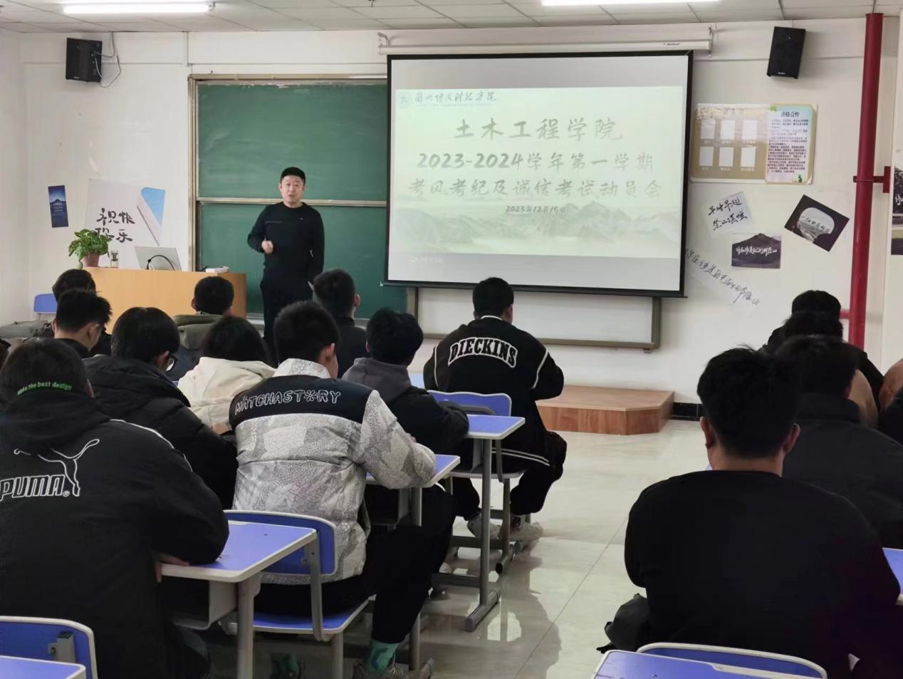 在期末考试来临之际,为更好的端正考风,严肃考纪,营造文明、诚信考试的良好氛围,土木工程学院于12月15日召开诚信考试动员大会。土木工程学院学院党委书记、院长黄钰峰主讲,2020级、2021级、2022级、2023级全体学生干部参加。
