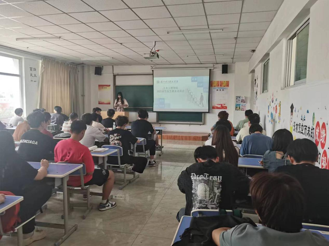 为进一步贯彻落实学校和招生就业处关于就业工作的指导要求,全力促进我院毕业生高质量就业,引导学生树立正确的择业观、就业观,帮助毕业生早就业,就好业。6月18日至6月28日,土木工程学院以班级为单位举办2025届毕业生就业动员会,动员会由土木工程学院院长黄钰峰,副院长巩岩,辅导员杨金星、辅导员梁逸兰老师组织召开。