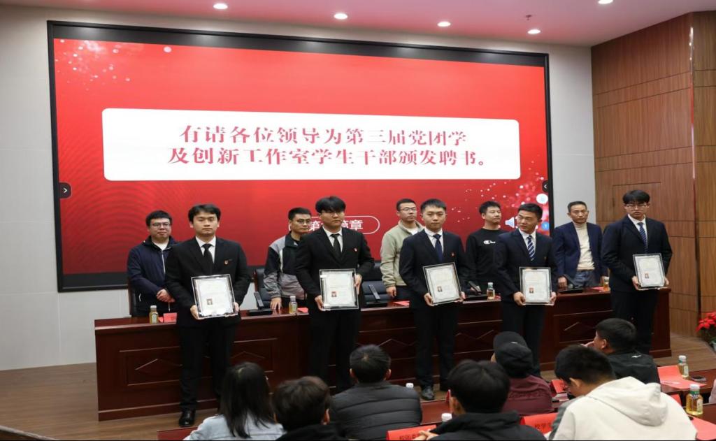 随后,第四届党团学及创新工作室的学生干部进行就职演讲,他们阐述了自己对所竞选职位的认识、工作设想以及未来规划。在热烈的掌声中,由各位领导为本届学生干部颁发了聘书,将象征着责任与使命的旗帜传递给新一届学生干部,这不仅是一种仪式,更是一种传承。最后,领导和学生干部进行了合影留念。表明了领导对学生干部群体的工作肯定和学生干部在工作中成长的欣慰,激励更多学生积极参与学院各项事务和学生对于自我能力的提升,同时合影也成为了学院历史的一部分,此次换届大会的举行也让学院学生干部队伍涌入了新鲜血液,也宣扬了学院的优良传统和文化精神。