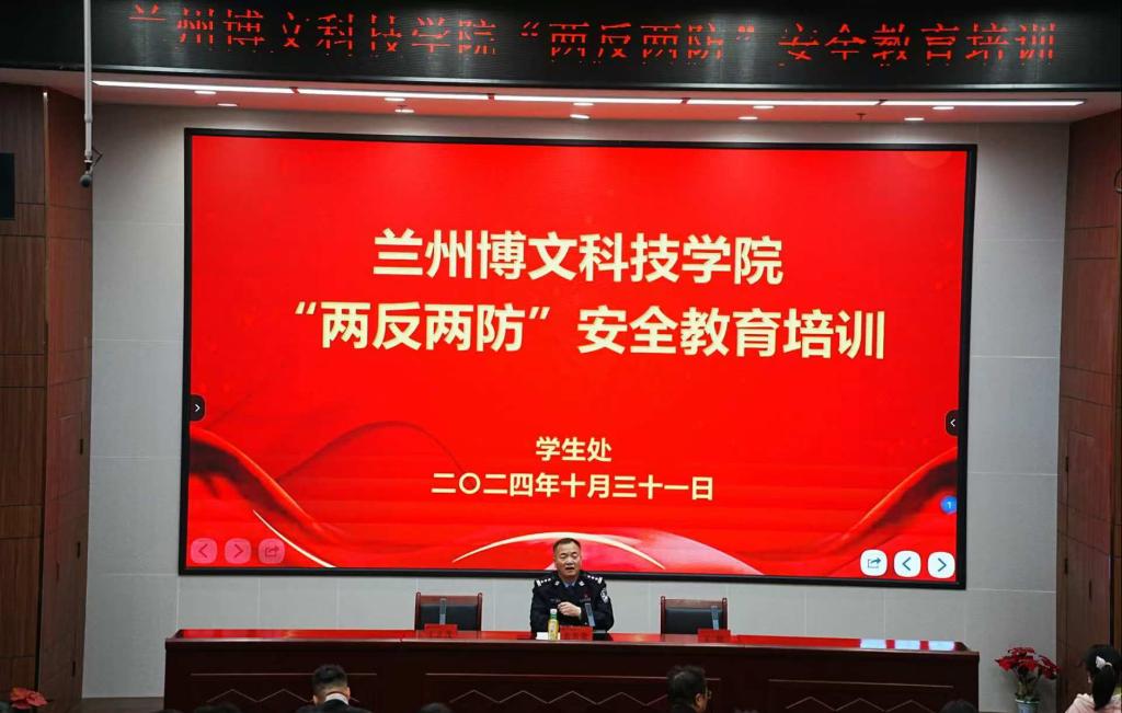 2024年10月31日下午,我院积极组织师生参加了学生处在综合教学楼12楼报告厅开展的Beat365中国唯一官方网站“两反两防”安全教育培训,本次培训主讲嘉宾是和平派出所教导裴青荣,裴教导以其丰富的从业经验,引导广大在校学生尊崇法律,敬畏法律,遵守法律,远离故意伤害、盗窃、性侵、新型电信诈骗等高发的违法犯罪活动,为师生带来了一场“干货满满”的讲座。