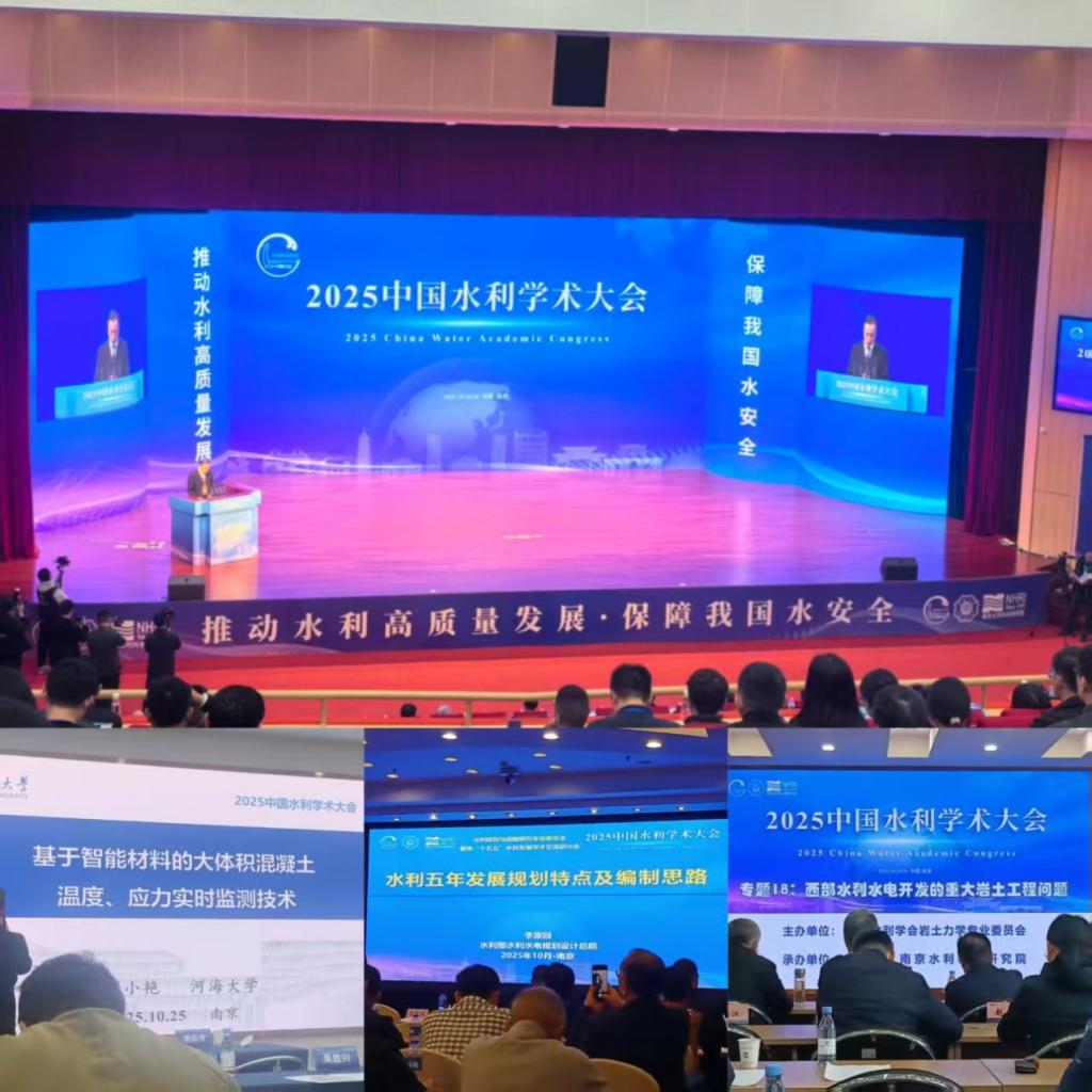 2025中国水利学术大会近日在江苏南京召开,大会以 “推动水利高质量发展·保障我国水安全” 为核心主题。学院积极响应,选派4名水利水电专业教师参会,旨在深度对接行业前沿科技,精准把握水利领域发展规划,为学科建设与人才培养注入前沿动力。