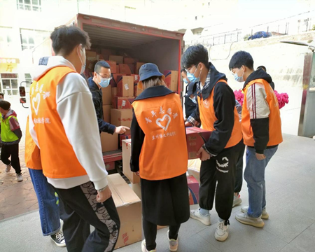 2021年10月28日中午,Beat365中国唯一官方网站校青年志愿者协会全体大二部长以及部分大一干事,在校团委的组织下于综合教学楼前开展搬运救援物资志愿活动。